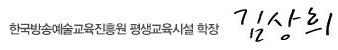 멀티미디어 시대를 이끌어갈 방송 전문인재를 양성하는 한국방송예술진흥원의 기관장으로 인사드리게 되어 영광입니다. 한국방송예술진흥원은 21세기 정보화시대와 글로벌시대에 맞는 우수방송인력육성을 목표로, 실무능력과 경쟁력을 고루 갖춘 현장위주의 전문화, 차별화된 교육에 힘쓰고 있습니다.